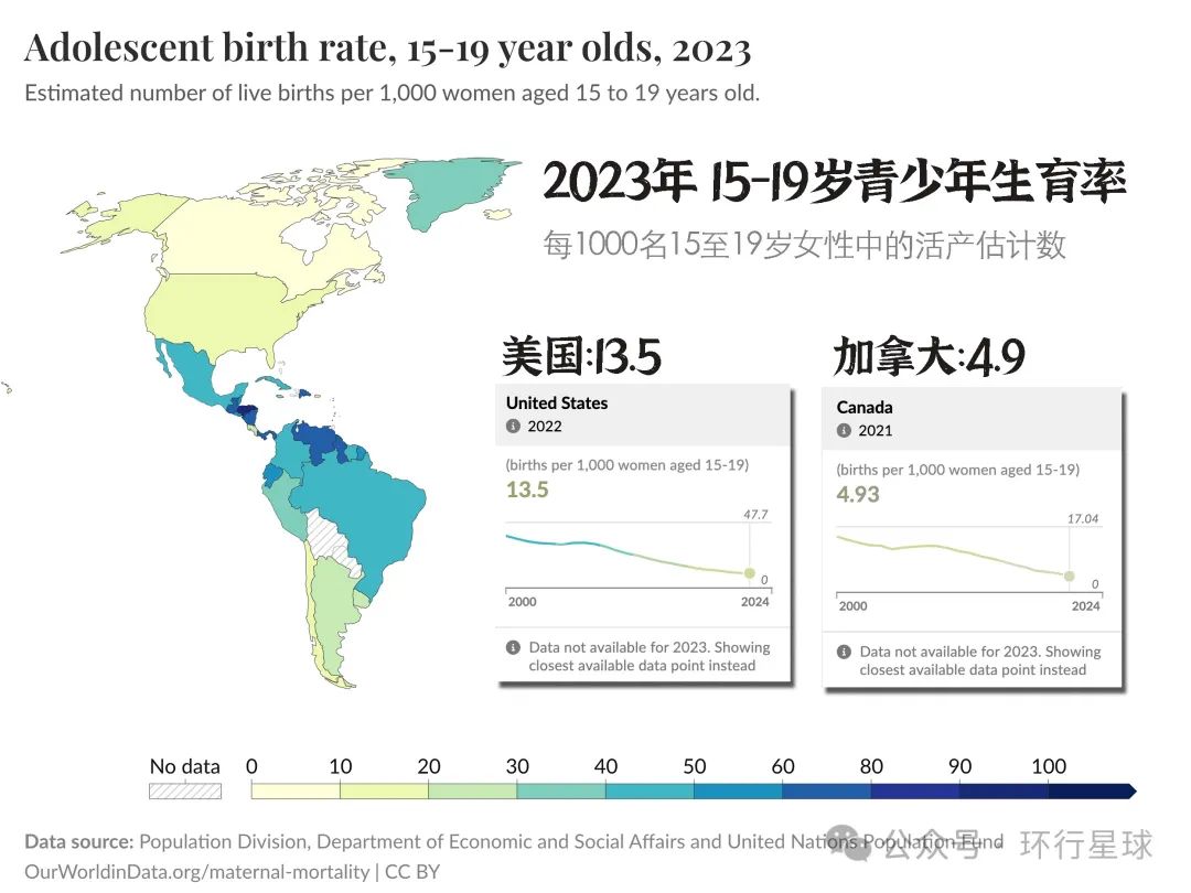 美國疾病控制與預防中心(CDC),發佈的青少年生育數據顯示,最近幾年美國"每1000名15-19歲少女中的生育數量約為17-20左右。
