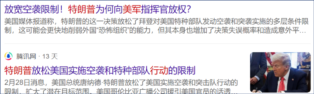 特朗普是瞄準誰惹吧?就在前段時間,特朗普和五角大樓接連廢除空襲和特種部隊行動限制。