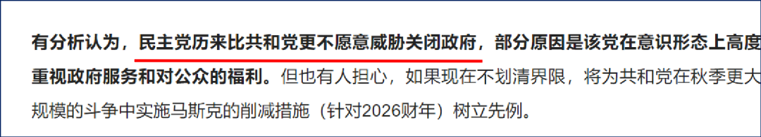 4.關鍵矛盾殺機凜冽:民主黨強烈反對法案中賦予特朗普政府“支出決策自由裁量權”等條款,認為其架空國會監督權。參議院民主黨領袖舒默稱,法案將“讓特朗普和馬斯克掌控一切財政權”。