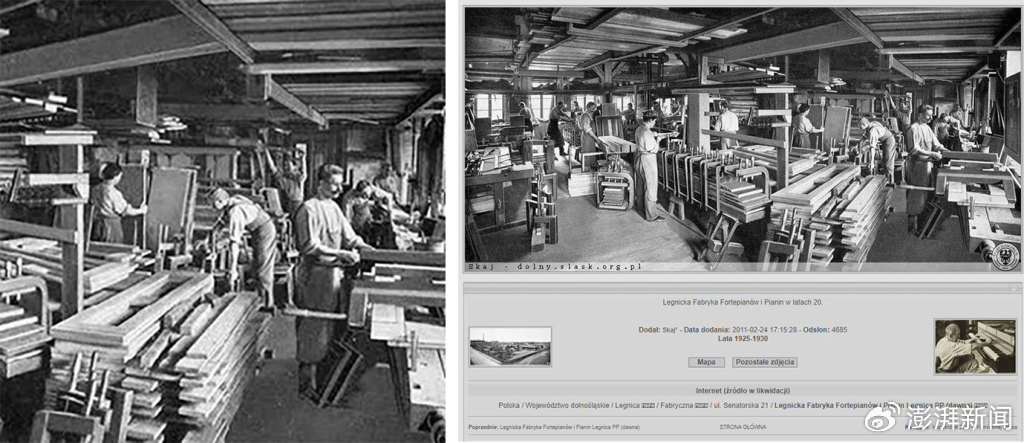 左圖為斯坦梅爾鋼琴網站圖,右圖為上個世紀20年代的德國利格尼茨塞樂爾鋼琴廠照片
