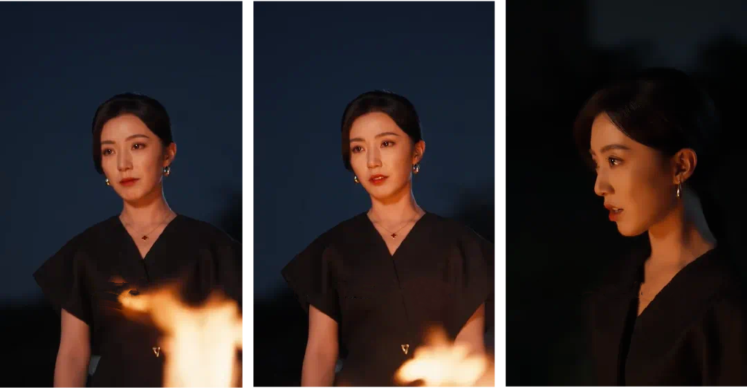 聽花島短劇的視聽辨識度來自“捨得花錢”,來自情感、美感組成的鏡頭美學。以《引她入室》的影像風格為例,視覺上用了大量的暗調和高反差的打光,專門跑去成都拍攝,以求陰天氣候與懸疑氛圍相匹配,建築風格、高低錯落的外景結構與豎屏構圖相匹配。