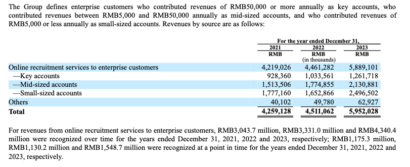 這部分企業客户的在線招聘收入,其實就是企業為了招人,給 Boss 直聘交的錢。