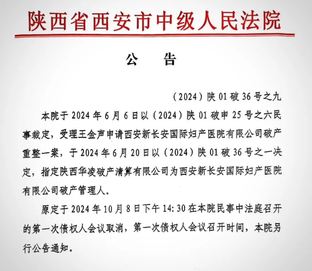 無獨有偶。開業僅6年的西安最貴醫院也發出破產倒閉公告。