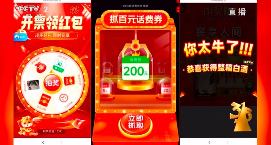 “中獎200元話費券”“免費領取千元白酒”,消費者在開具電子發票、掃碼停車、使用共享設備等日常場景中,常遭遇強制跳轉的“幸運大轉盤”抽獎頁面。實際上,話費券需充值數千元才能完全使用掉;免費白酒實為貨到付款的劣質產品;更有自動續費協議被隱匿在停車抽獎頁面的角落裏。據央視3·15曝光,僅頭部互動廣告公司日流水就達20億元,暴利背後是海量消費者被誤導消費的真實困境。