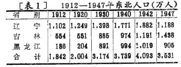 我國《人口學刊》1985年第一期,中共吉林省委政策研究室的文章《解放以前的東北人口》)((圖一,圖二)),該文人口數據是根據東北現行行政區劃統計(包括了大連)。