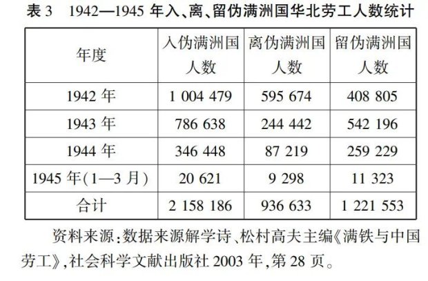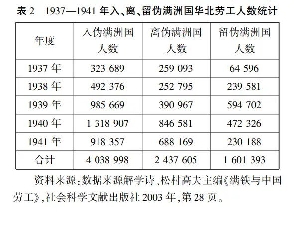 根據《滿鐵與中國勞工》一書,1937-1945年1-3月,估計東北人口淨流入在282萬多人,比七七事變前出現了猛增。