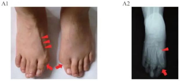 FOP患者通常伴有雙側足部拇指外翻/圖自參考資料[2]