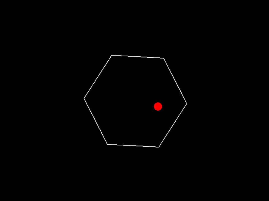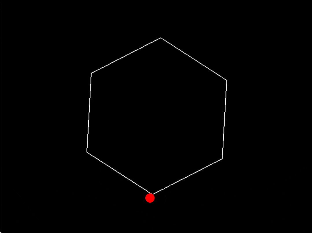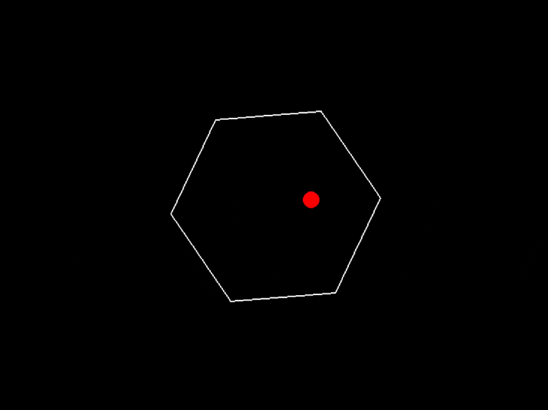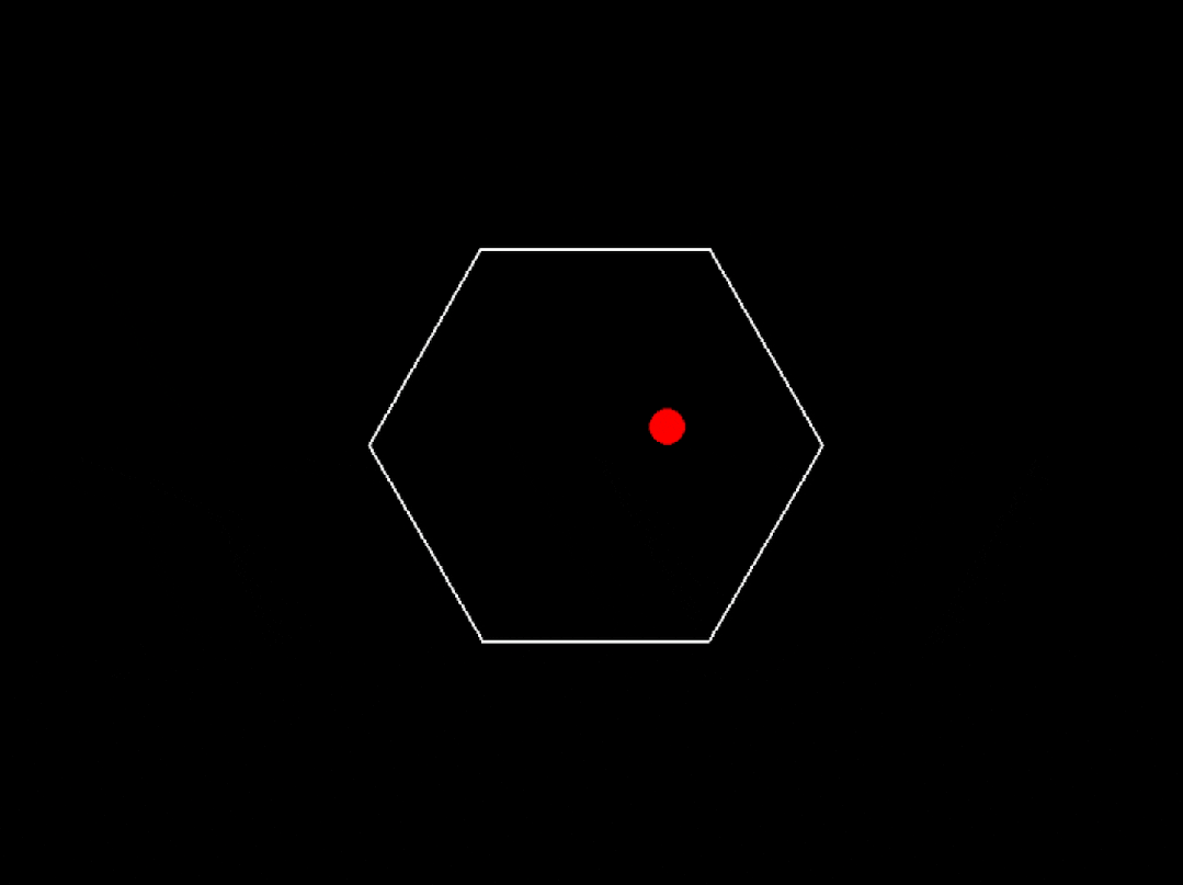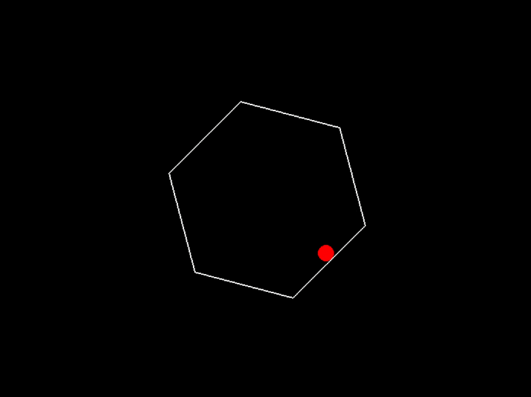 程序運行成功了,但是球碰到六邊形牆壁後沒有反彈,而是直接飛出去了,請修改代碼,實現球與牆壁的碰撞交互。
