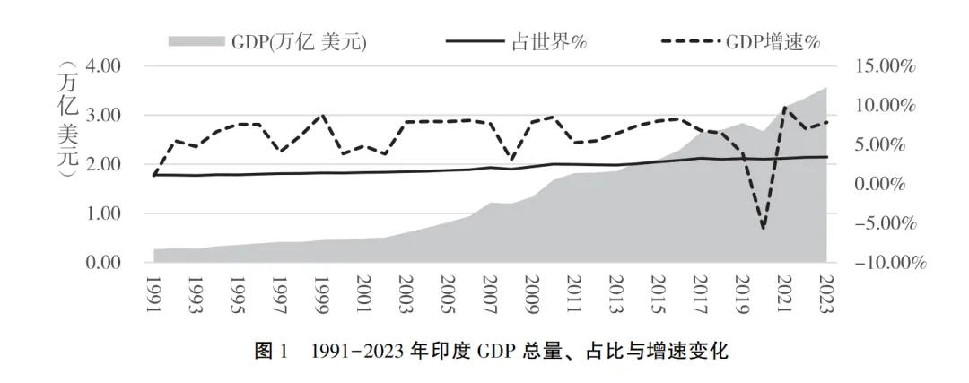 縱向對比,中國“十進五”的過程雖然同樣用了十年,但國內生產總值增加了3倍(1995年為6萬億人民幣,2005年為18.73萬億人民幣) 。不同的增長質量,民眾的獲得感完全不可同日而語。印度民眾沒有像中國民眾一樣隨着國力的提升,可支配財富明顯增加。這是印人黨執政十年後,部分民眾開始對莫迪感到厭倦的根本原因,也是2024年印度大選中,印人黨的實際成果遠未達到預期的一個關鍵因素。而且,恰恰是這次被印人黨事前寄予厚望並大加張揚的選舉及其遠不及預期的結果,促使人們認識到或許有必要對印度經濟增長的實際狀況進行再分析,並在此基礎上對印度的經濟增長前景和中印經濟關係走勢進行再思考,以避免陷入國際輿論界特別是西方和印度輿論界多年來在相關問題上設置的話語陷阱。為此,本文將從印度經濟增長總量、速度和質量入手,分析經濟制度、技術進步和國際環境對印度經濟發展前景的硬約束作用。同時,在對印度經濟“祛魅”的基礎上,剖析印度對華經濟政策的多重心理,認清印度對華經濟行為的複雜心態。最後,針對印度對華產業利用、競爭、打擊和替代策略,提出相應的應對措施思考,以破解國際輿論場上盛行一時的印度即將甚至已經成為中國在全球產業鏈中替代者的論斷。