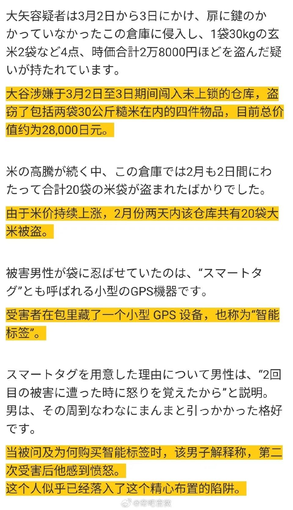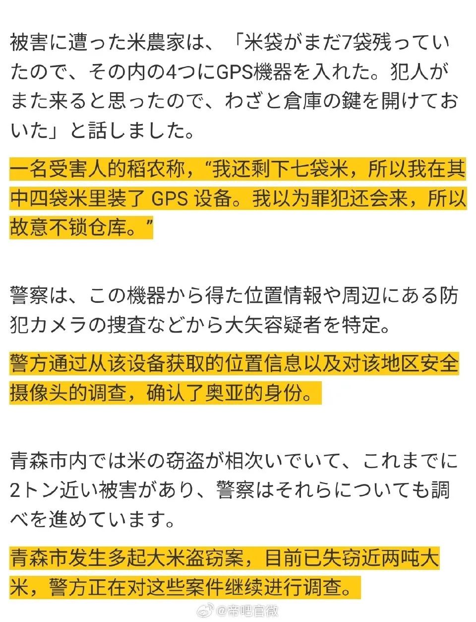 現在看到日本人居然混到要偷糙米的地步,日本農民為了防止米被偷,居然要在米袋子裏裝GPS定位器……糙米是什麼稀缺品嗎?