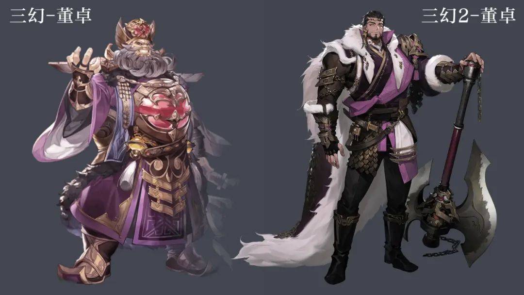 團隊從漢代昇仙壁畫中汲取靈感,將漢代國風的“硬派與浪漫”,融合現代審美的“機能風”設計,打造出既厚重又現代的視覺語言。董卓一改傳統暴君形象,以高顏值與邪魅氣質引發討論;周瑜則通過畫師五年沉澱,實現從“儒將”到“戰魂”的風格蜕變。面對“3D 表現不足”的爭議,官方解釋:“九宮格戰鬥限制模型精度,但我們用2D 立繪+ 動態Live2D 強化劇情表現,主界面的‘極樂世界’與暗黑主線形成張力,讓玩家沉浸於光暗交織的三國宇宙。”