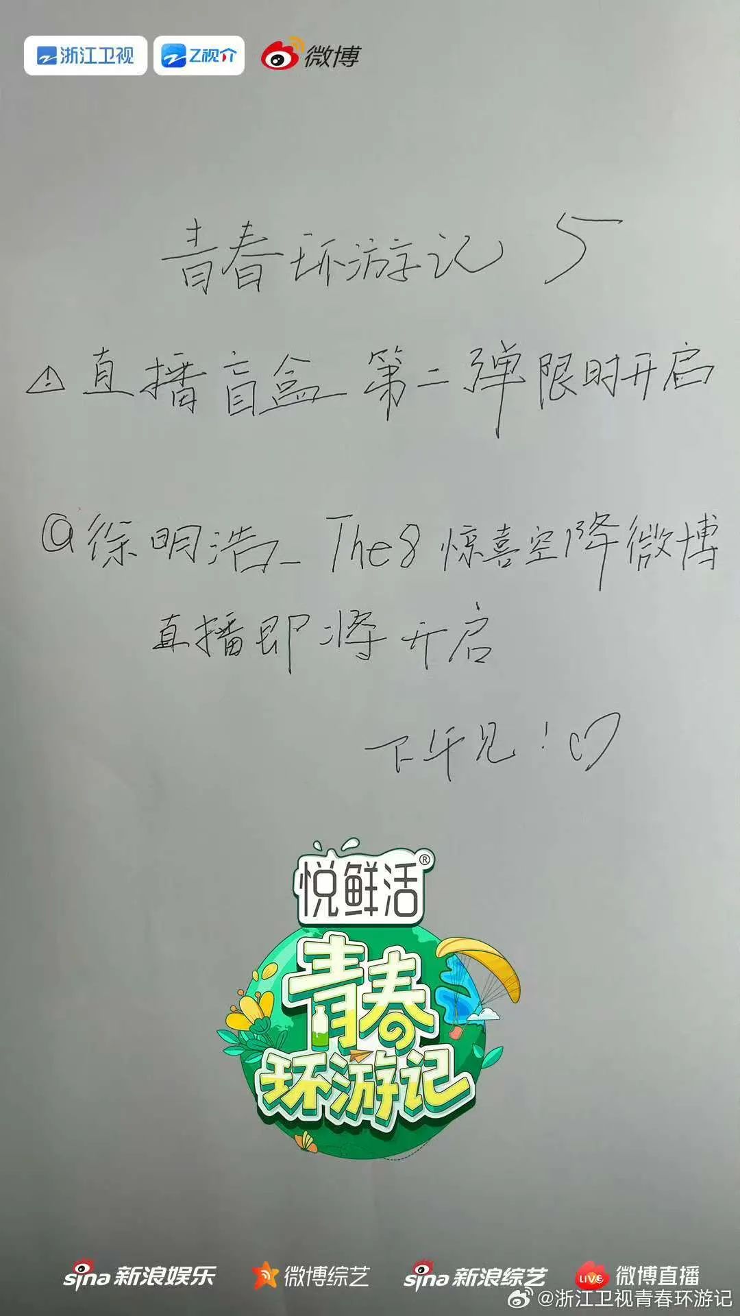 品牌與作品也能在微博實現雙贏,例如,《青春環遊記5》將手寫海報發佈在微博,成為了“綜藝史上最潦草的官宣”,冠名方悦鮮活官微及品牌總監迅速跟進下場互動,“悦鮮活急了”登上熱搜高位。一來一去之間,品牌成功在開播前就賺足了眼球。