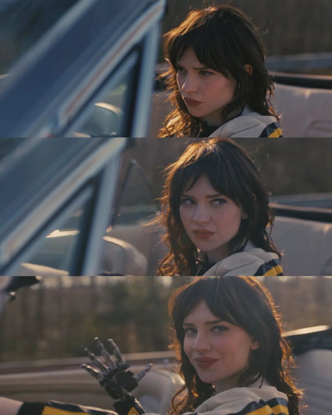 影片最後,Iris獨自開車着馳騁在自由的路上,向另一輛車裏沒有覺醒的“Iris”揮了揮機械手。