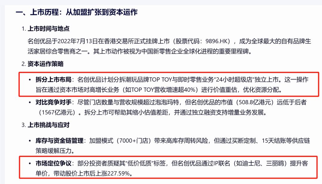 怎麼理解這個能力?《節點財經》先考它了一個小題,讓它説説名創優品的上市過程和分析: