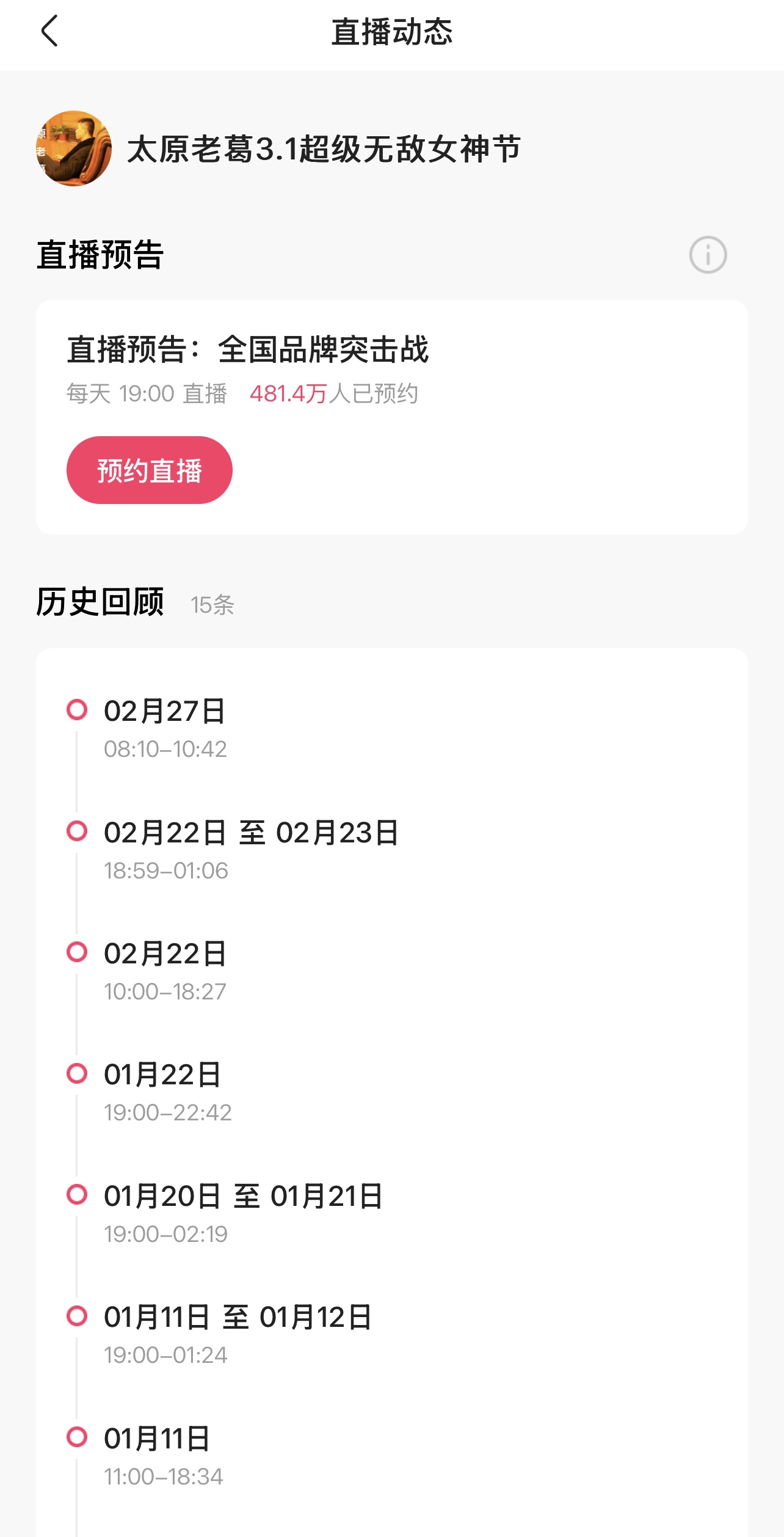 此外,查看直播記錄發現,其最近一期直播是在2月27日,直播預告顯示每天晚上7點直播,但是2月27號之後就沒有直播。