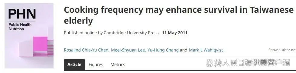 2011年,我國台灣研究人員發表在《公共衞生營養》期刊上一項研究指出,愛做飯的人或會更長壽。在10年的研究中發現,與從不做飯相比,做飯能顯著降低死亡率,而做飯頻次越多,死亡風險越低。每週做飯5次以上的參與者死亡風險降低近50%。