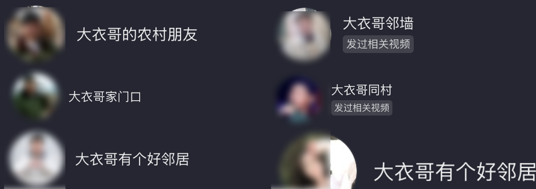 當我們打開各大短視頻軟件,“大衣哥鄰居”“大衣哥朋友”“大衣哥同村”等賬號層出不窮,彷彿水蛭一般,吸附在朱之文身上,汲取着“血液”。