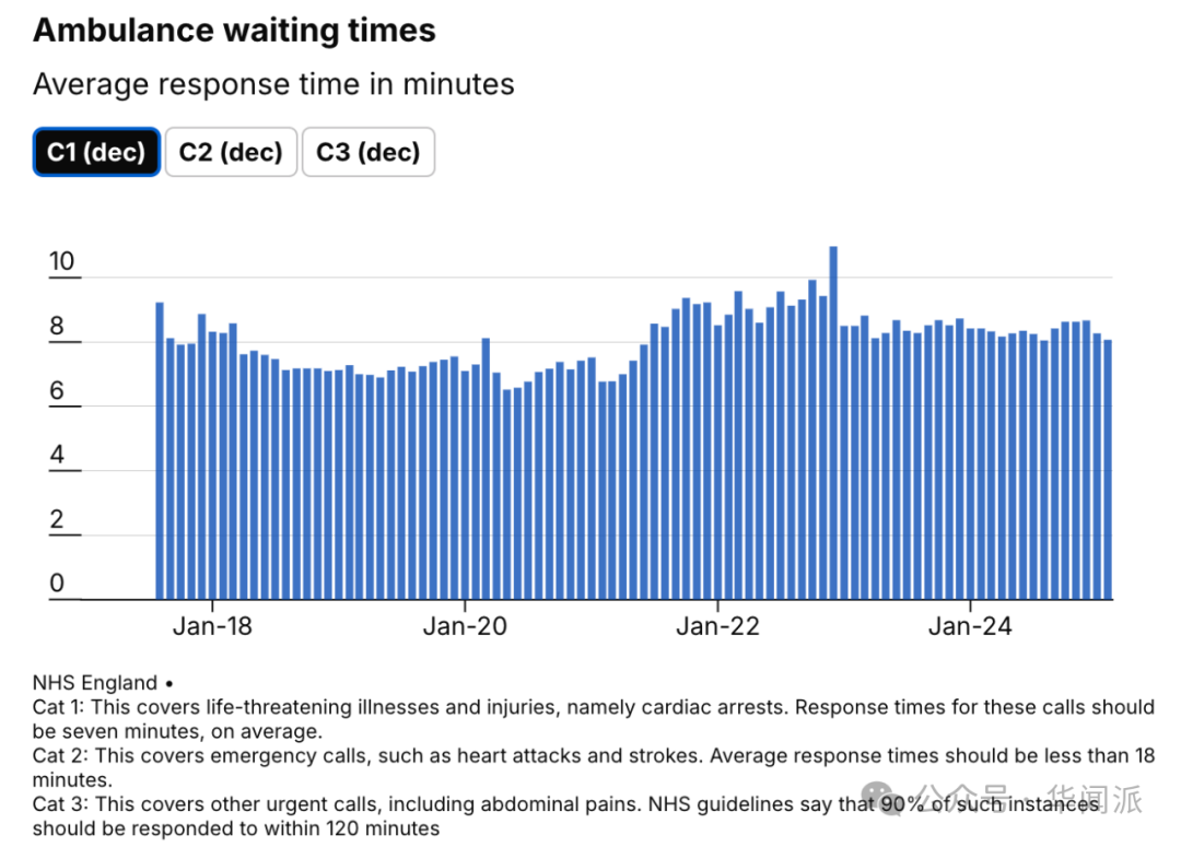 對於3類呼叫(如嚴重腹痛),目標響應時間為2小時,但自2019年底以來,這一目標也未能實現。這些延誤不僅讓患者承受巨大的痛苦,還可能危及生命。