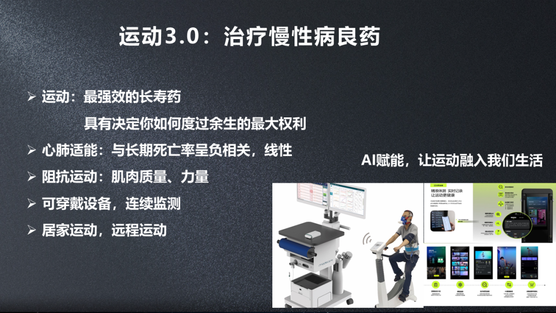 我現在接下來簡單的講一下幾個方面,首先第一個是叫運動3.0,我們大家知道運動是良藥,是吧,但是很多人不知道,運動是最強效的長壽藥,它具有決定,我們如何度過餘生的最大的權力。