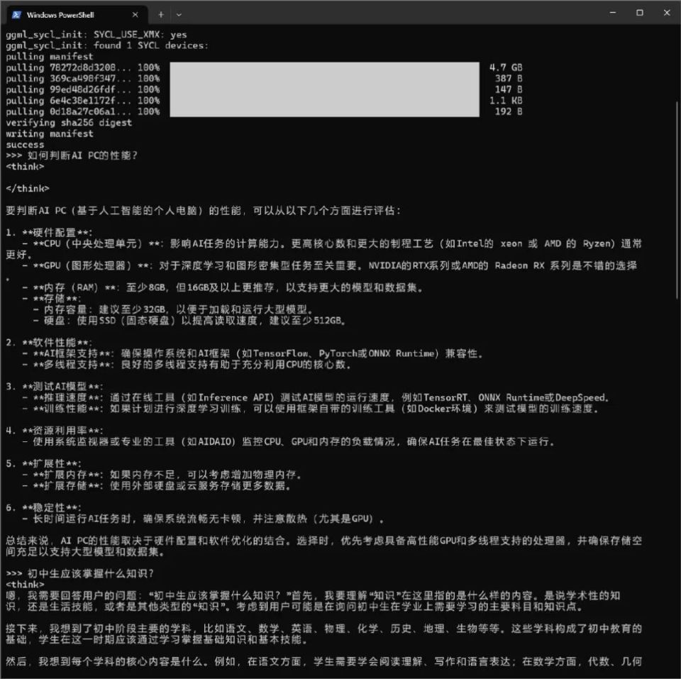 這時候,再通過IPEX-LLM Ollama加載DeepSeek,