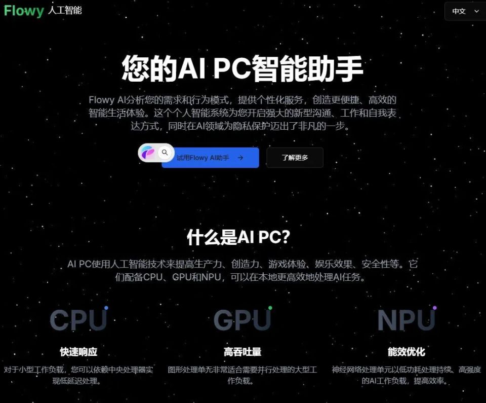 如果你覺得前面通過Ollama-IPEX-LLM三步走的方式仍然麻煩,這裏還有一招更厲害的,即通過Flowy AIPC一步到位獲得DeepSeek。這裏只需要進入Flowy AIPC官網,下載安裝程序,登陸,就可以一氣呵成獲得一套完整的人工智能對話界面。