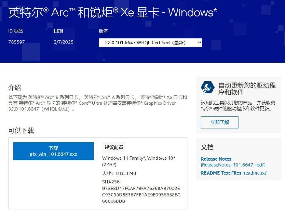 因此在正式安裝之前,筆者建議前往英特爾官網更新一下對應的驅動,比如酷睿Ultra 200H系列的iGPU,或者剛發佈沒多久的英特爾Arc B580,都需要最新驅動的支持。