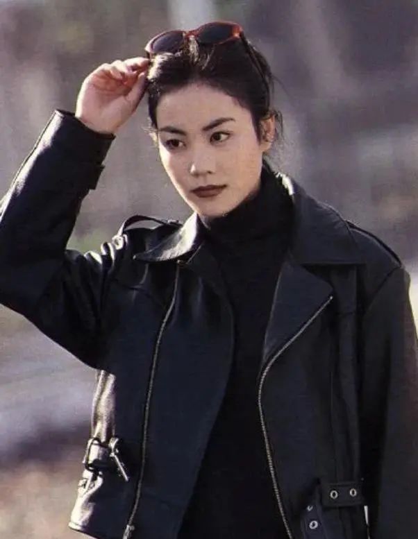 (上世紀90年代,王菲在電影《原振俠》穿着皮衣)