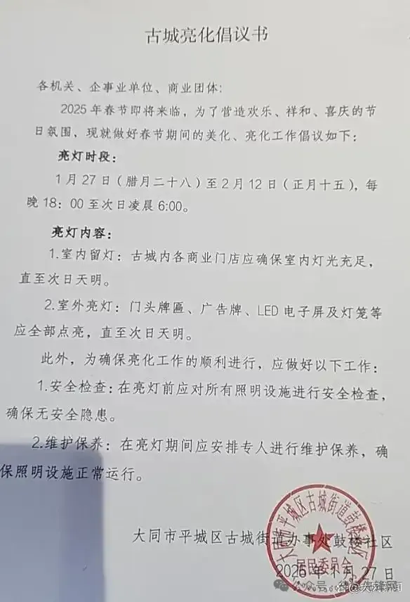 明顯的時遷境移,今非夕比了,所以這一波亮燈工程,可視是一場逆天際線運動。但是,這種運動式、隨機性、強制化的政策,必然會出現山西大同古城這樣的亂執法!
