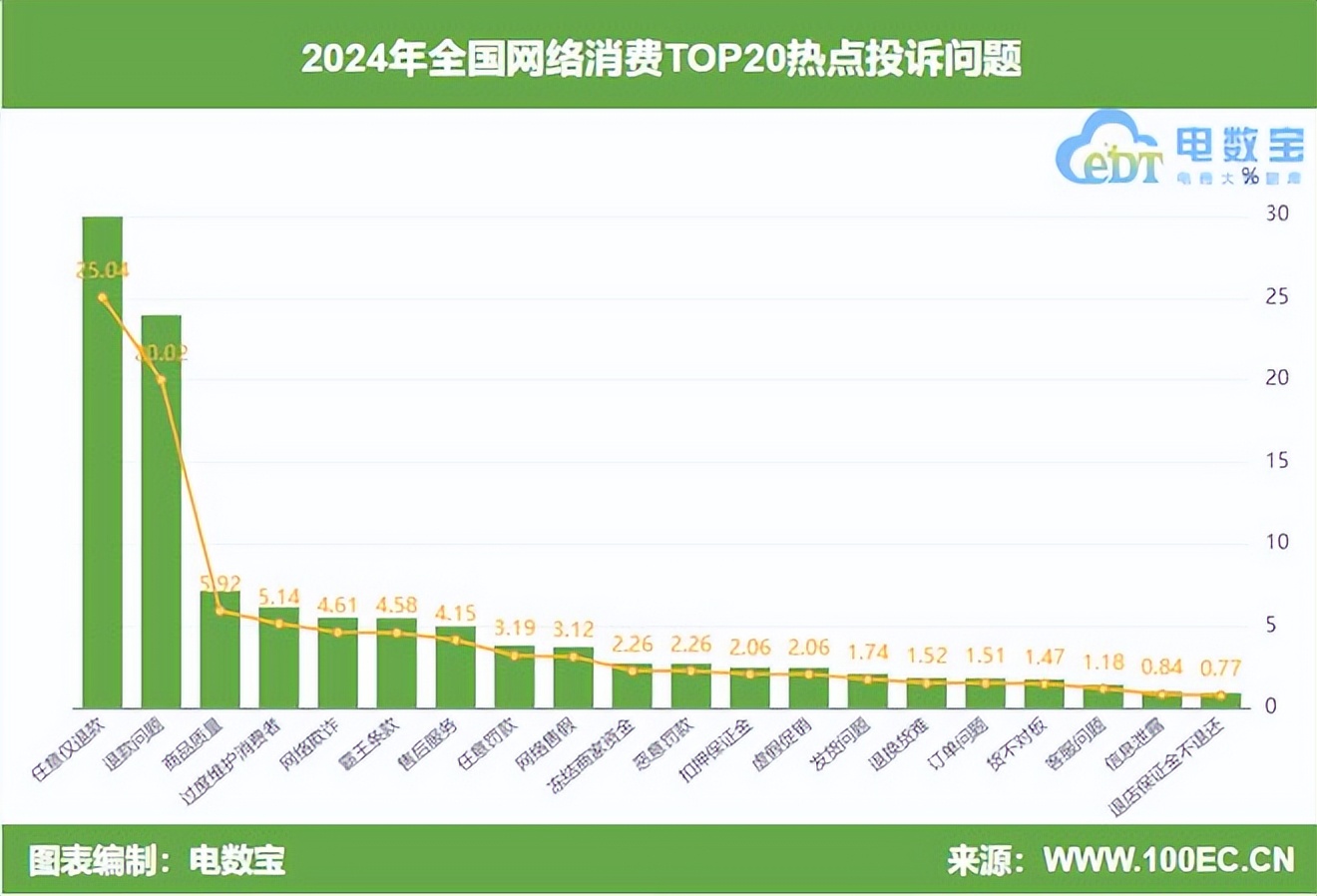 3月13日,依據網絡消費糾紛調解平台“電訴寶”2024年全年受理的全國173家網絡消費平台糾紛案例大數據,“一帶一路”TOP10影響力社會智庫網經社電子商務研究中心例行發佈**《2024年度中國電子商務用户體驗與投訴報告》**。該報告已連續第14年發佈,被業內普遍視為“網絡消費315風向標”。
