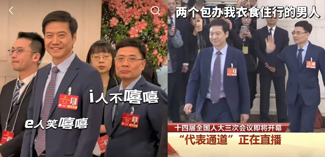 由於此前企業家IP塑造得成功,雷軍一出場就吸引了周圍記者的熱情互動,而其身旁的周雲傑則沒有收穫太多的“歡呼聲”,其尷尬和拘謹與雷軍形成“反差萌”,兩人的照片還被製作成表情包,在網友的各種造梗下,周雲傑在網絡上迅速走紅。