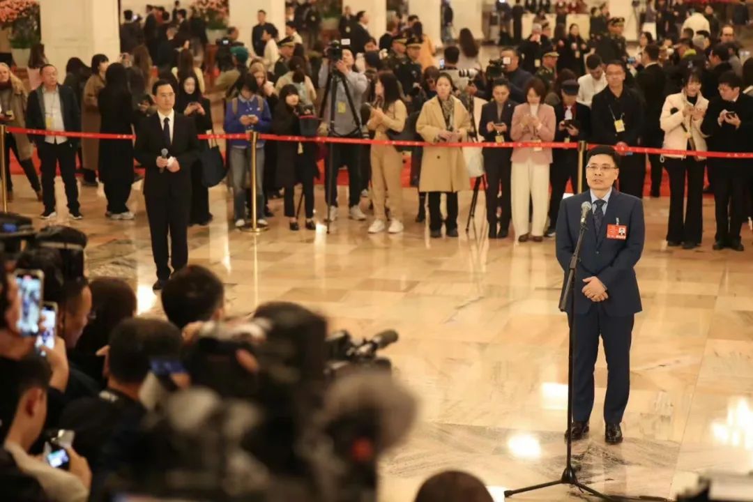 3月5日,周雲傑與小米集團創始人雷軍作為人大代表,同時在兩會的“代表通道”接受採訪。