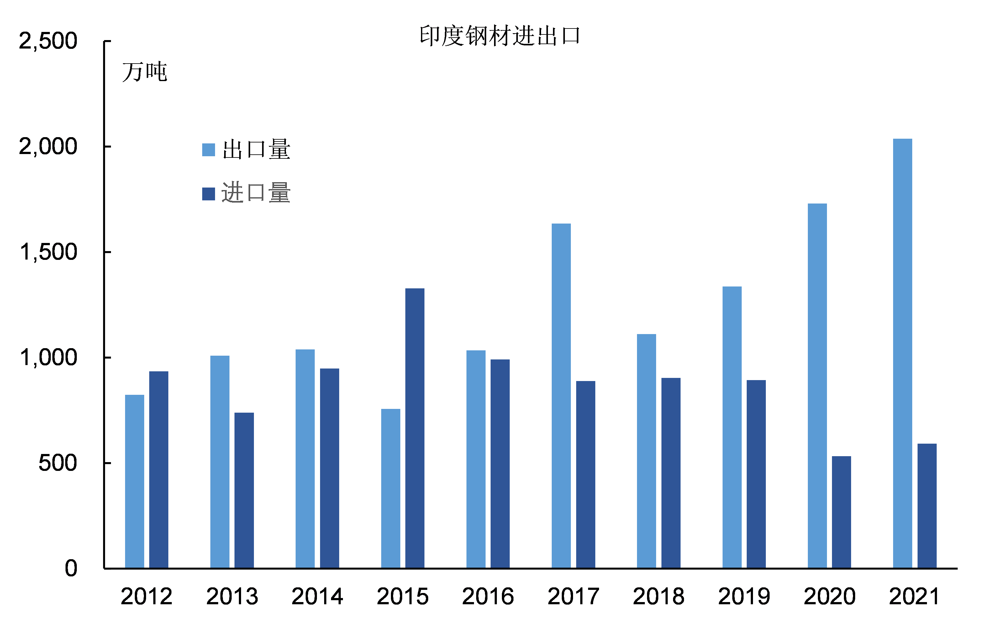從印度鋼材的進出口情況看,印度鋼鐵工業的主要市場在國內,是印度本國的市場支撐了印度鋼鐵工業的發展。