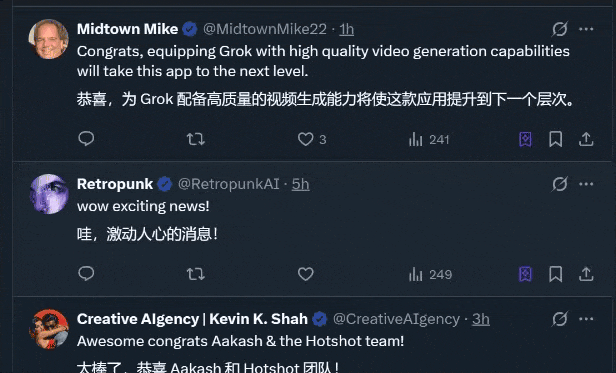 就在最近,xAI收購了一家視頻生成初創公司,這家僅4個人的公司過去兩年打造出了Hotshot這款產品。