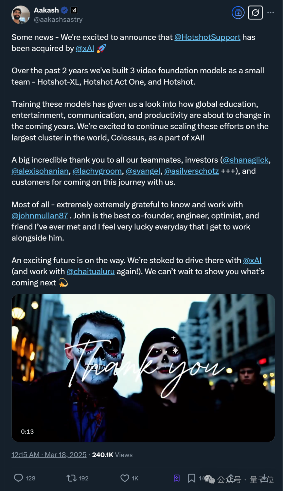 至於具體融資次數和規模,Hotshot尚未公開披露,而且也不清楚整個Hotshot團隊是否會集體加入xAI。