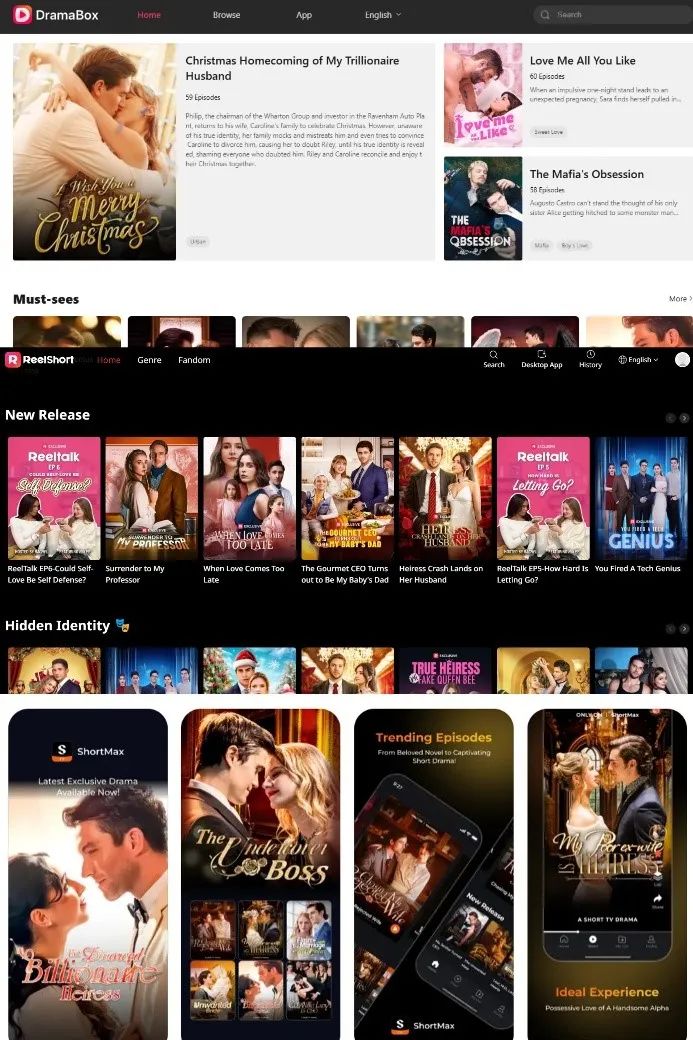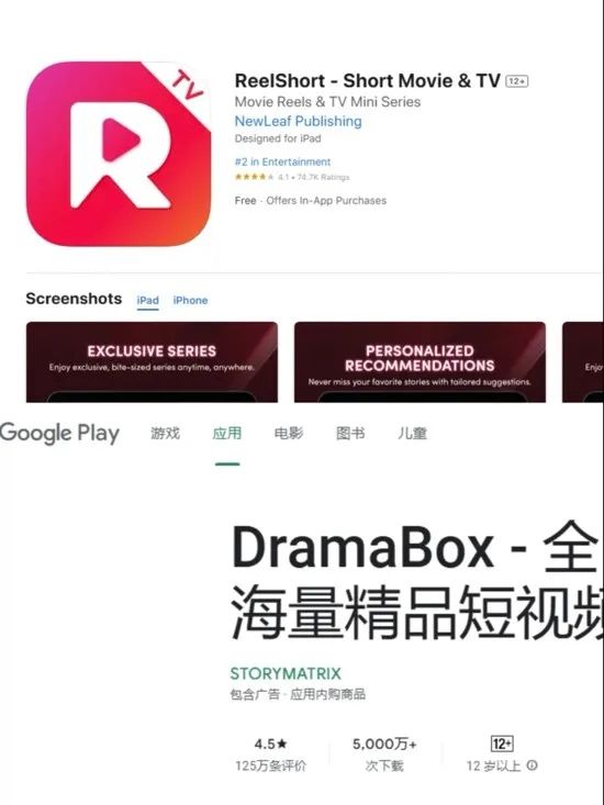 ShortMax曾深耕東南亞譯製劇市場,DAU突破1000萬,2024年轉攻北美市場,深入自制劇市場,成為ReelShort的直接競爭對手,其安卓市場下載量也已突破5000萬次。
