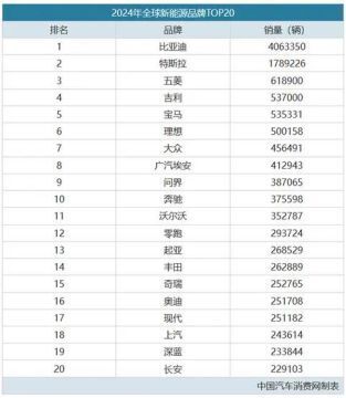 但在全球新能源汽車市場具體品牌方面,比亞迪以超400萬台的成績領跑。