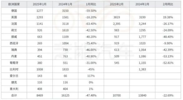 數據顯示,特斯拉2月在德國的銷量同比驟降76%,在瑞典、挪威、丹麥的銷量分別同比下降42%、48%和48%。在其最大市場美國本土,銷量也連續4個月下降。