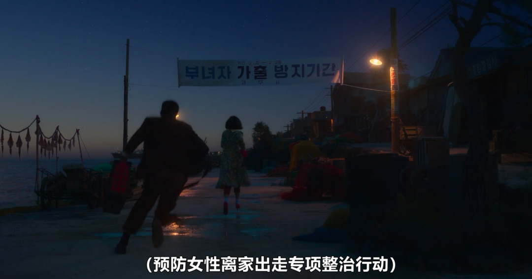 劇裏毫不吝嗇地用過分奢侈的浪漫底色烘托這場私奔,兩人偷了家裏值錢的東西,以最大的興奮與憧憬,在遍地都是“預防女性離家出走”橫幅的落後年代,頭也不回地跑向海的另一邊。