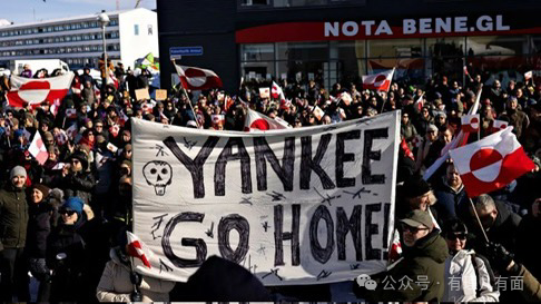 讓我們先把鏡頭轉向努克市政廣場:僅1.9萬人口的北極小鎮就彙集了近千名抗議者,包括了舉着“美國佬回家”標語的漁民、牽着雪橇犬的獵人和裹着傳統服飾的老嫗,他們在零下十度的寒風裏用凍得通紅的手比出拒絕手勢。這場面像極了《冰與火之歌》裏的北境子民對抗異鬼大軍,只不過這次的“夜王”換成了揮舞着大棒的特朗普。