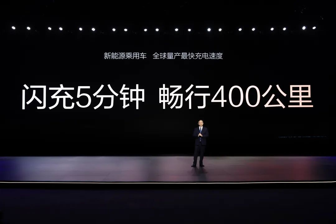 比亞迪集團董事長兼總裁王傳福在發佈會上表示,「為了徹底解決用户的充電焦慮,我們的追求,就是讓電動車的充電時間,和燃油車的加油時間一樣短,也就是在充電速度上實現油電同速。」