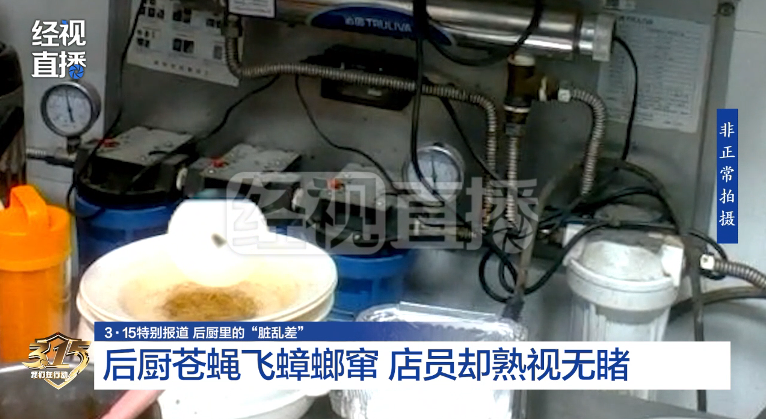 成羣的蒼蠅在到處亂飛、油鍋和冰箱隨處可見蟑螂,甚至有的電器電線已經外露,糊滿厚厚的污漬。