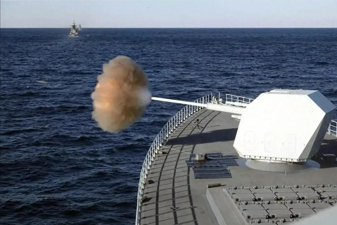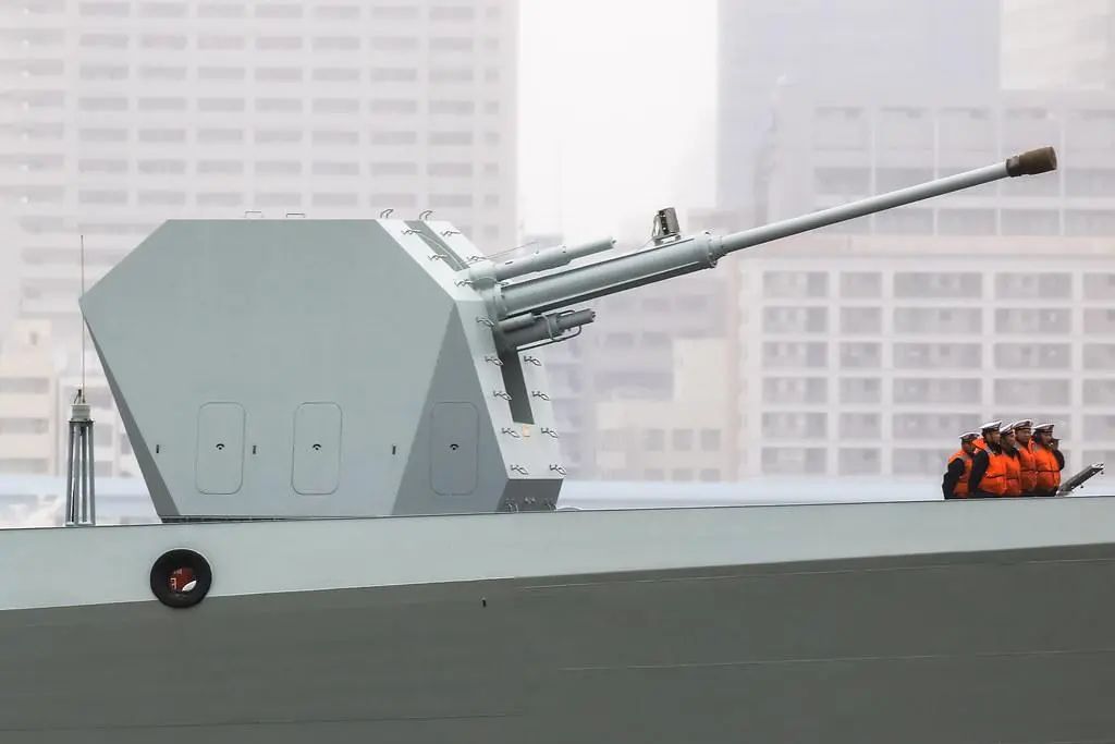 公開資料顯示,中國海軍目前裝備有兩種大口徑艦炮,分別是裝備在052D驅逐艦上的H/PJ-45A型單管130毫米艦炮,以及安裝在055萬噸大驅上的改進型(基於H/PJ-45A型)單管130毫米艦炮。後者防護罩更利於隱身,並取消了炮口制退器,同時又恢復了雙路供彈設計。最關鍵的在於,該炮在發射超遠程滑翔制導炮彈時,射程可達120千米。