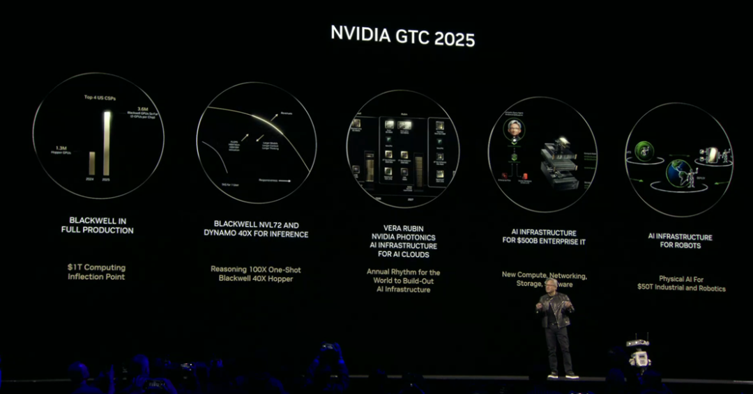電子發燒友網報道(文/莫婷婷)北京時間3月19日晚間,NVIDIA 創始人兼首席執行官黃仁勳在2025年GTC開發者大會上發表了主題演講,介紹了英偉達在AI、機器人、加速計算等領域的最新進展,包括新一代芯片Blackwell Ultra(GB300)、數據中心超級芯片Grace Blackwell NVLink72、NVIDIA Dynamo開源推理軟件、DGX Spark和DGX Station兩款個人AI電腦/計算機,首款開源人形機器人功能模型——GR00T N1等解決方案,還有新機器人亮相。
