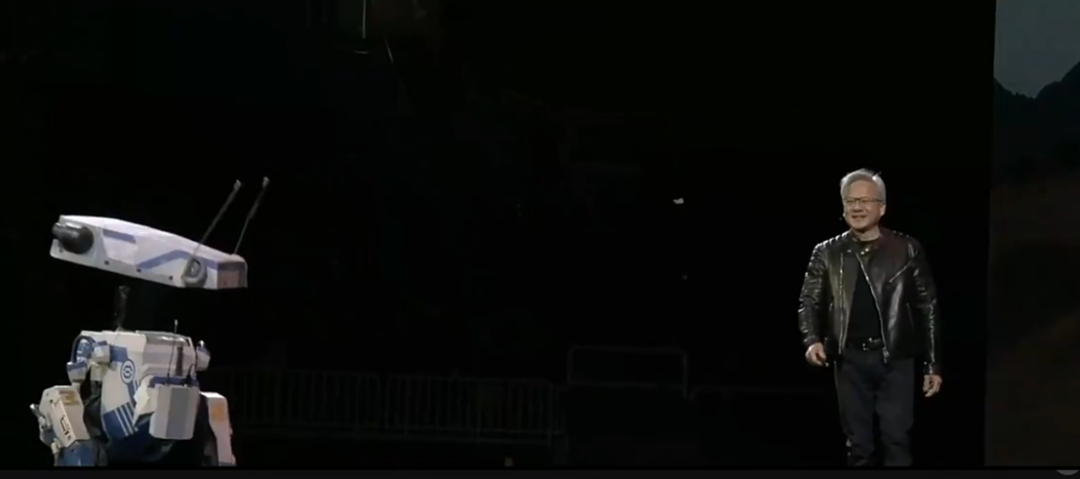 在演講最後,機器人Blue走向舞台,黃仁勳嘗試與其進行互動。機器人Blue配有英偉達最新的GR00T N1機器人通用基礎模型。