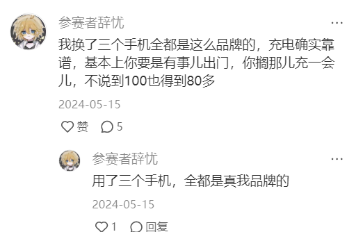 這樣的體驗,也難怪消費者會用錢包投票了,在某紅書上,很多用户就直言:“目前在用真我的150W充電機型,好爽,用了之後很難在用回100W以下的了”、“OPPO的充着電打兩局王者差不多充滿了”。