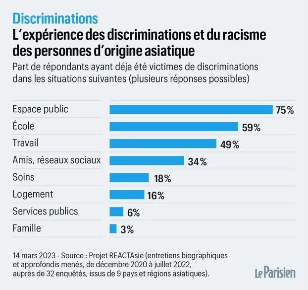 根據調查顯示,絕大多數亞裔都表示自己曾在法國遭遇到種族歧視,無論是在學校還是朋友之間。
