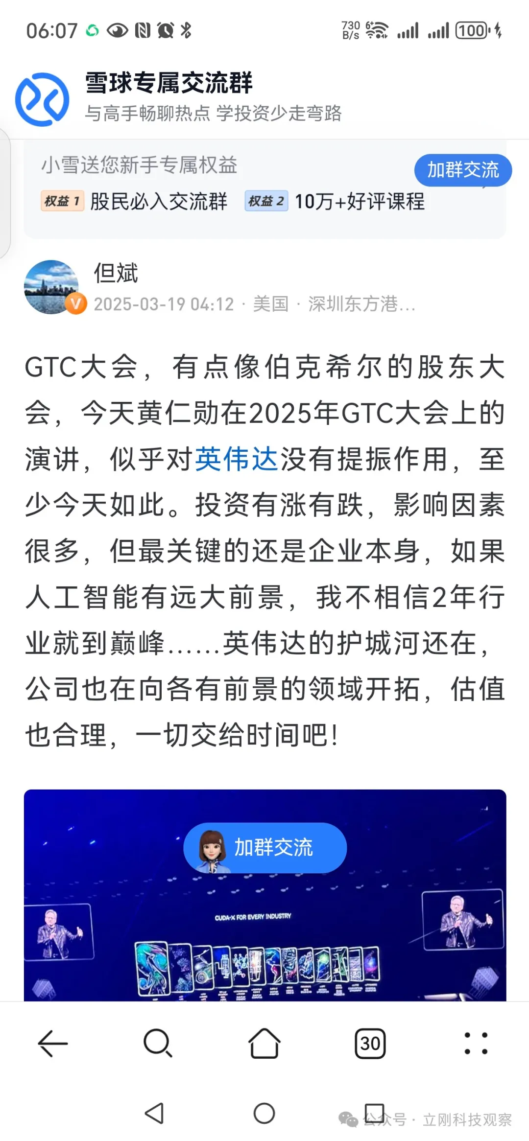 我就在下面看到推送的評論,有一個但斌的評論:“如果人工智能有遠大前景,我不相信2年行業就到巔峯…..英偉達的護城河還在,公司也在向各有前景的領域開拓,估值也合理,一切交給時間吧!”