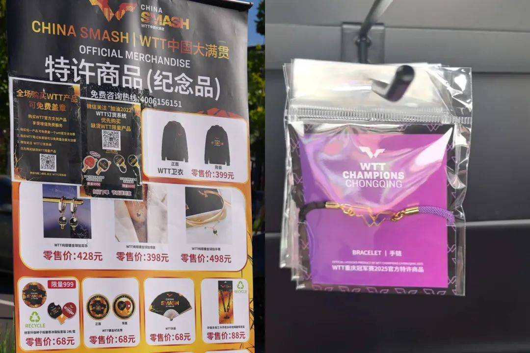 其實在去年10月,WTT中國大滿貫就已推出帶有乒乓球元素的耳環、項鍊和手鐲,定價在400元左右也早早於線下售罄。而如今亞洲盃乒乓球手繩「爆火」的實踐更是進一步驗證了此番邏輯的可行,因此剛落幕的WTT重慶冠軍賽衍生品陣列也有手鍊在內。