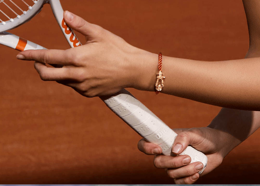 而如今健康生活方式已成大勢,體育運動場景被飾品品牌「盯」上也屬情理之中——法國當代珠寶品牌斐登FRED曾宣佈與法國網球公開賽(French Opening)合作,打造聯名款Force 10系列手鐲。