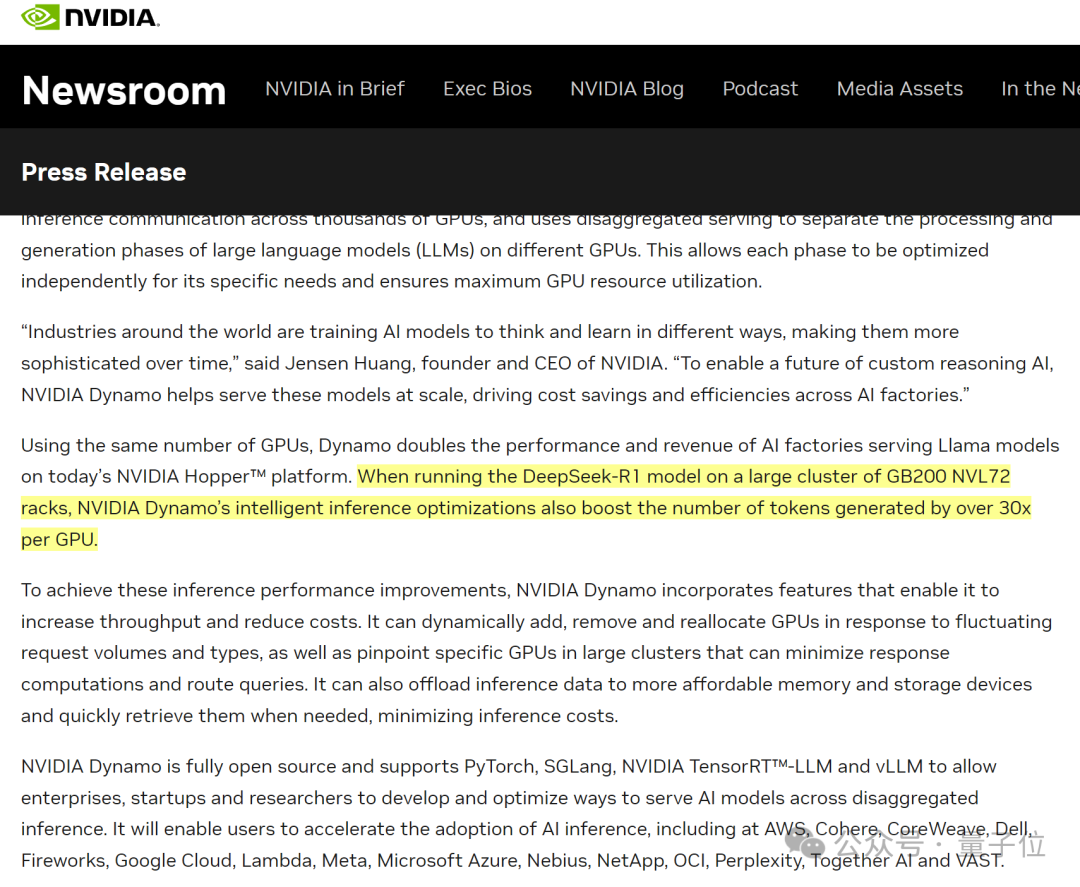 按照英偉達的説法,在NVIDIA Blackwell上使用Dynamo優化推理,能讓DeepSeek-R1的吞吐量提升30倍。